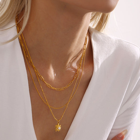 B廠【P2147】 太陽花貝珠鎖骨項鍊飾品不鏽鋼鍍18K真金不掉色首飾 25.01-2