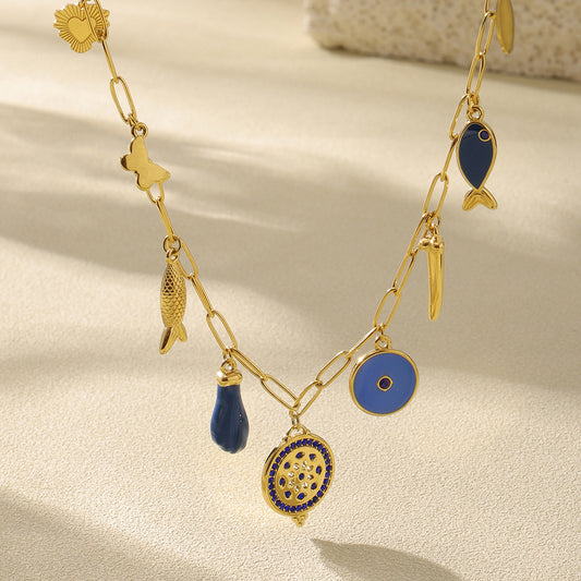 B廠【P2149】O字鏈圓形鋯石項鍊小魚眼睛多配件輕奢時尚誇張鍍金鎖骨鏈 25.02-3