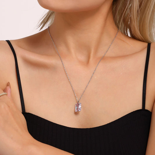 B廠【P2157】歐美飾品不鏽鋼長切面捷克玻璃項鍊女簡約輕奢風精緻項鍊 25.06-2