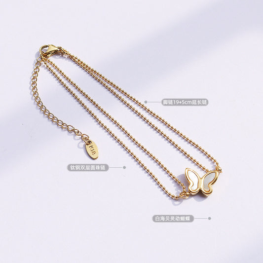 B廠【S103】歐美小眾設計ins冷淡風蝴蝶腳鈦鋼18k金腳鍊ins飾品沙灘腳飾 24.04-2