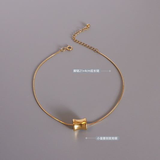 B廠【S081】歐美輕奢legchain小蠻腰腳鍊圓筒蛇骨鏈飾品鈦鋼鍍18k金保色腳飾 24.04-4