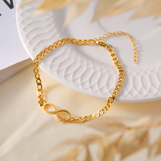 B廠【S138】時尚流行數字8字字母組合腳鍊鈦鋼材質鍍18k真金個性氣質飾品 24.07-3