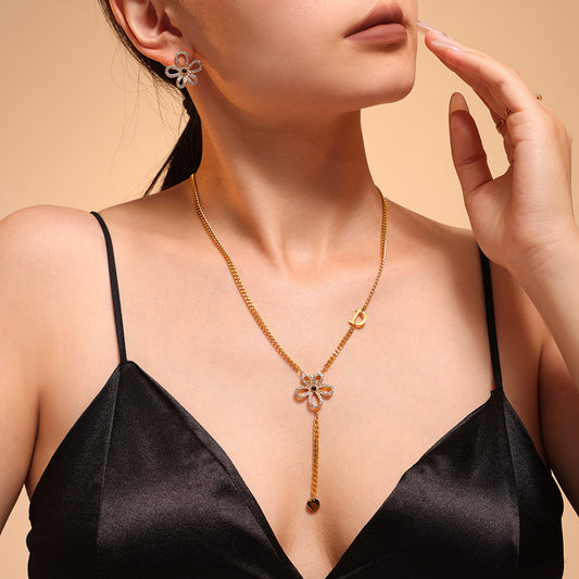 B廠【TXF152】飾品手工花朵黏鋯石耳環項鍊首飾組鈦鋼鍍18k真金保色 24.10-4