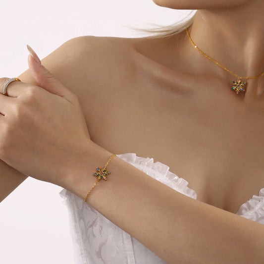B廠【TXE217】手工鑲嵌超閃鋯石聖誕雪花手鍊鍍18K真金鈦鋼首飾不掉色女 25.01-2