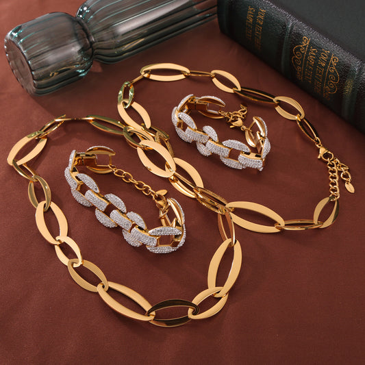 B廠【TXE038】跨境簡約嘻哈風鈦鋼項鍊不掉色歐美新潮幾何粗鏈鑲鑽古巴鏈套裝女 24.05-3
