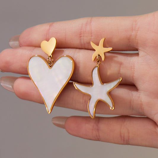 B廠【TXF410】天然貝殼滴油大小愛心耳環戒指不鏽鋼材質跨境熱銷時尚飾品 25.10-1