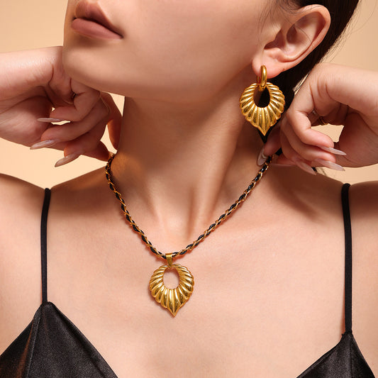 B廠【TXP136】歐美幾何海螺小帽鑲鋯石耳環項鍊跨境時尚新款鈦鋼材首飾套裝 24.09-4