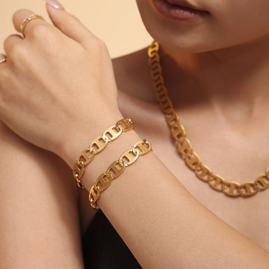 B廠【TXP150】飾品ins風日字手工鍊鍍18k真金鈦鋼材質項鍊手鍊套裝 24.10-4