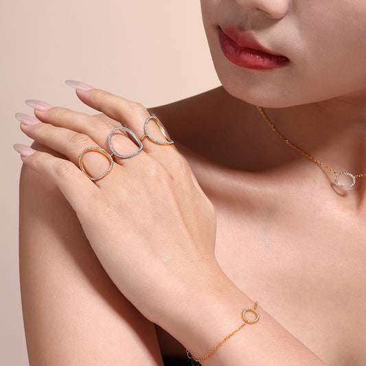 B廠【TXP131】法式marka小眾圓環鋯石鈦鋼戒指輕奢手鍊氣質項鍊18k鍍金精緻套裝 24.09-4