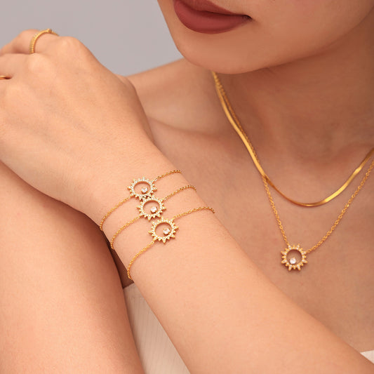 B廠【TXP161】 小太陽花CNC鑲鋯石超閃質感項鍊手鍊不鏽鋼氣質新組女 24.10-4