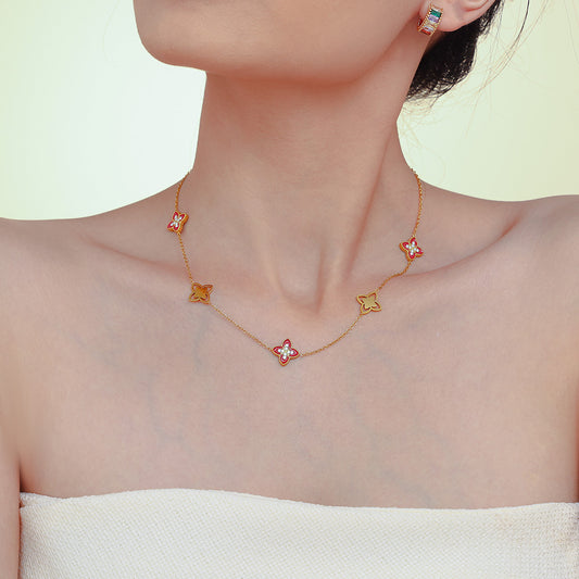 B廠【TXP141】歐美跨境滴油四葉花鋯石滿鑽手鍊項鍊小眾設計女生款閨蜜鈦鋼套裝 24.10-2