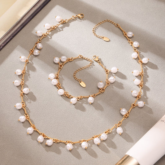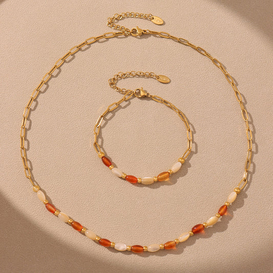 B廠【TXP258】輕奢夏日新款瑪瑙貝殼串珠手鍊項鍊不鏽鋼鏈條鍍18k金飾品 25.05-3