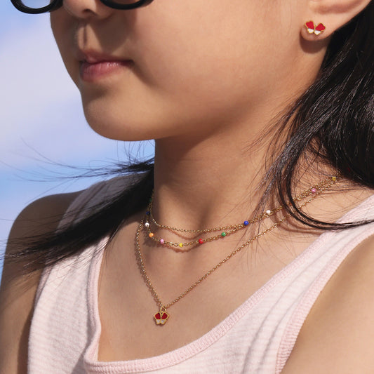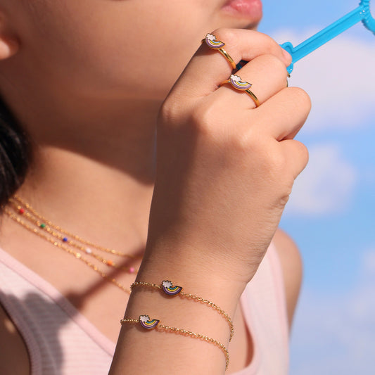 B廠【TXP264】不銹鋼材質新款兒童飾品彩虹滴油吊墜項鍊手鍊戒指耳環套裝 25.05-5