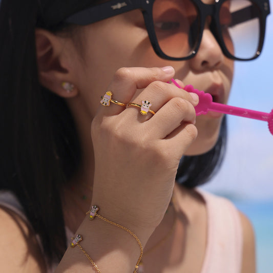 B廠【TXP262】不鏽鋼兒童飾品棒棒糖滴油戒指耳環手鍊項鍊組鍍18k真金 25.05-5