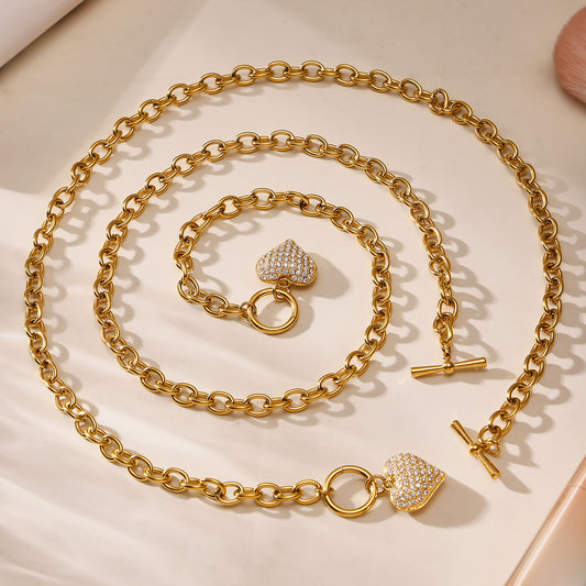 B廠【TXP268】歐美風飾品滿鑽5A鋯石愛心OT扣鎖骨項鍊手鍊套組不銹鋼材質 25.06-1