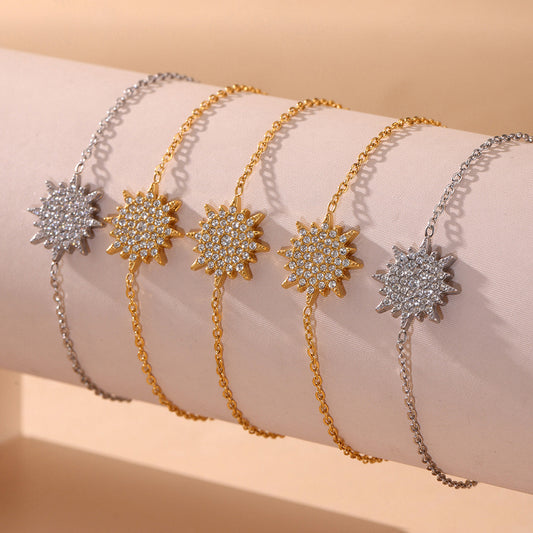 B廠【TXP289】超閃小太陽鑲嵌5A鋯石鎖骨雙層項鍊戒指組不銹鋼材質 25.07-1