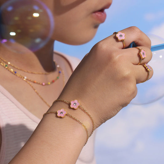 B廠【TXP263】新款不鏽鋼兒童飾品小眾可愛設計感花滴油鑲鋯石首飾套裝 25.05-5