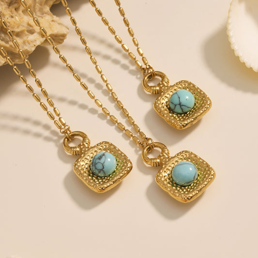 B廠【TXP332】新款不銹鋼藍松石吊墜項鍊耳環戒指套裝歐美精緻飾品不掉色 25.08-1