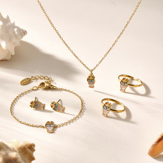 B廠【TXP319】不鏽鋼飾品彩色雪糕小可愛項鍊手鍊耳環戒指組18k金 25.07-3