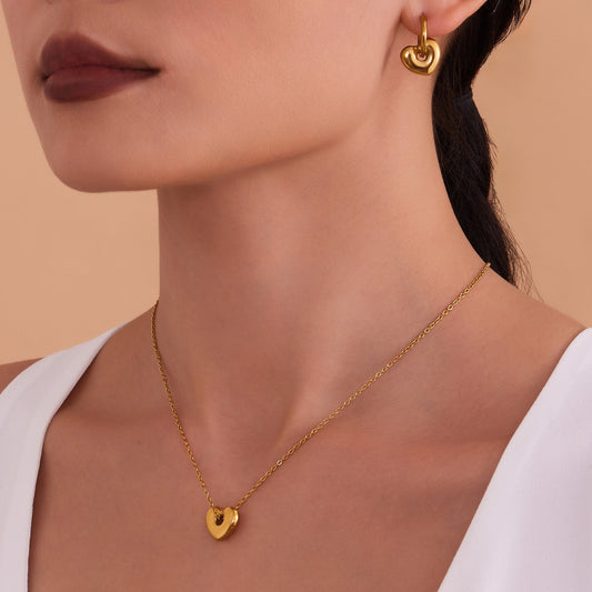 B廠【TXP383】跨境時尚新款不銹鋼愛心吊墜鎖骨項鍊耳環組合套裝鍍18k金 25.09-2
