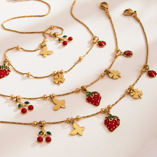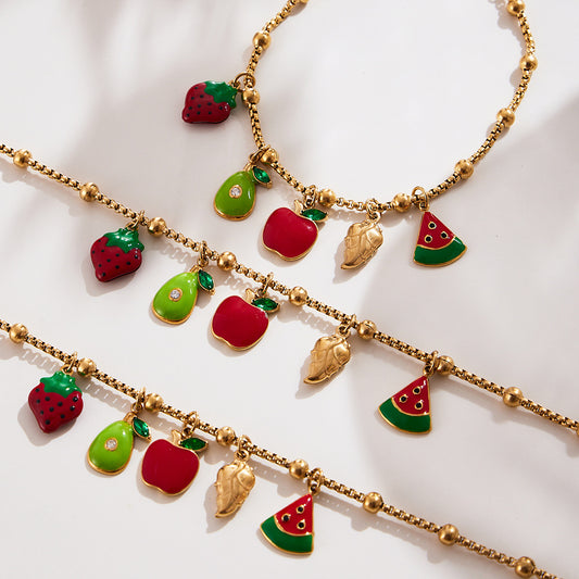 B廠【TXP414】水果系列鑲嵌鋯石多吊墜歐美風項鍊手鍊腳鍊套裝不銹鋼材質 25.10-1
