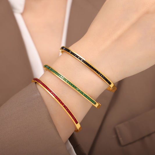 B廠【Z009-13】歐美時尚簡約鑲鑽鈦鋼鍍18k金手鐲INS復古女士輕奢彩鑽不掉色手環 24.03-3