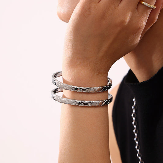 B廠【Z017】高版小香菱格卡扣手鐲PVD電鍍18K真金個性歐美風 25.01-1