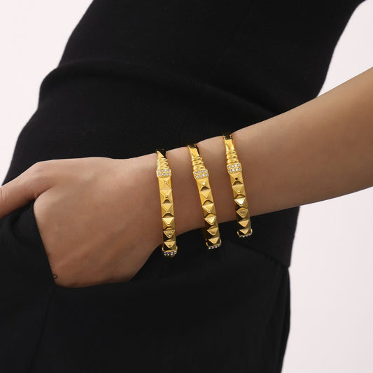 B廠【Z034】小香風鉚釘水鑽卡扣手鐲不銹鋼鍍18K真金跨境現貨奢華手鐲 25.01-1