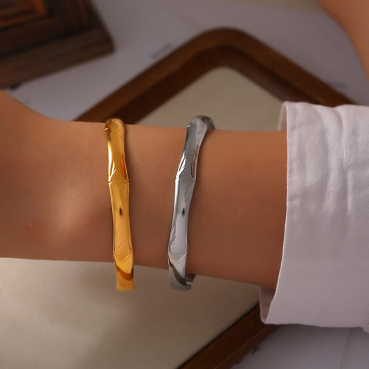 B廠【Z064】歐美INS風手鐲不掉色節節高升百搭手環開口竹節鈦鋼鍍18k金手鐲女 24.06-1