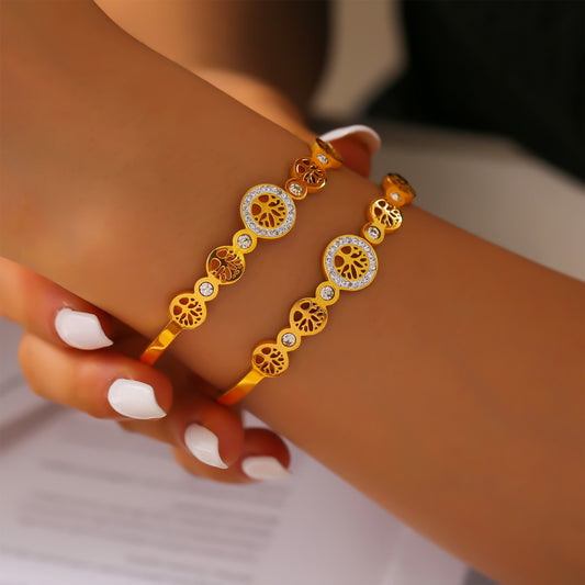 B廠【Z048】英倫復古小眾個性幾何鏤空鑲鑽設計感飾品生命樹造型鈦鋼手鐲 24.06-1