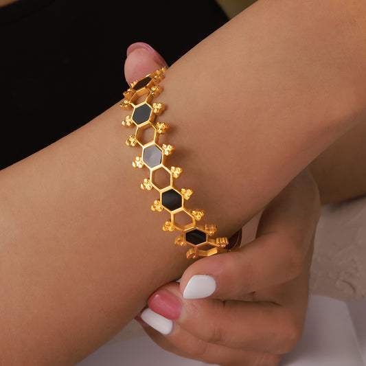B廠【Z037】法式高級感新款幾何六角形手鍊個性輕奢百搭鈦鋼鍍金亞克力手環女 24.04-1
