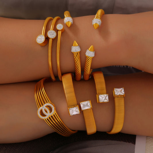 B廠【Z025】ins法式小眾設計簡約風鑲嵌閃耀鋯石鈦鋼鍍18k真金手鐲飾品 25.05-4