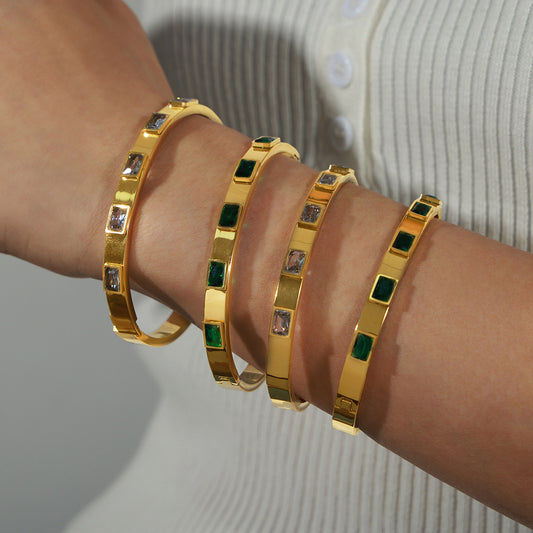 B廠【Z325】歐美ins復古18k鍍金鈦鋼手鐲女高級感鑲鋯石手鐲時尚網紅同款手飾 24.01-3