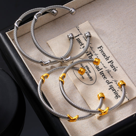 B廠【Z319】跨境歐美簡約滿鑽鈦鋼鍍金手鐲幾何迴紋針愛心復古個性不褪色手環 24.06-4