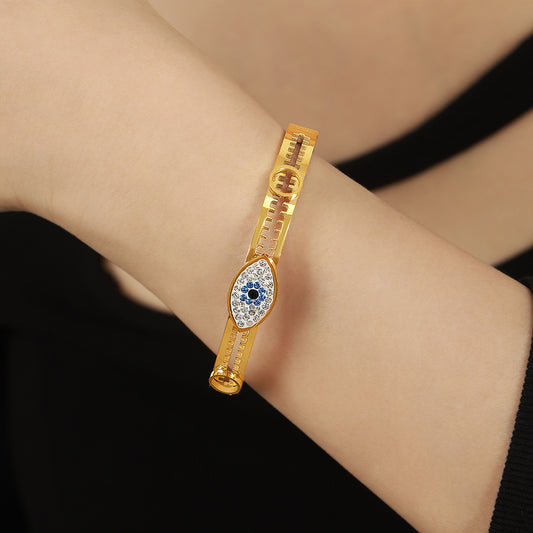 B廠【Z332】歐美個性誇張鑲鑽惡魔之眼手鐲女設計鋸齒鏤空不掉色金色手鐲飾品 24.03-1