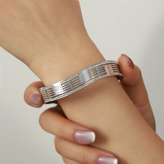 B廠【Z333】日韓新式鏤空式創意設計手環兩邊雙排滿鑽精緻潮流鈦鋼不掉色手鐲 24.03-1
