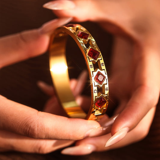 B廠【Z396】ins小眾設計感不鏽鋼紅色瑪法彩釉幾何開口手環PVD鍍18k金 25.04-3