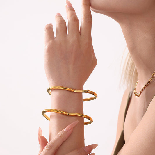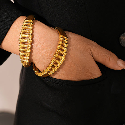 B廠【Z376】跨國創意女性身體開口手環 歐美個性網紅手環鈦鋼鍍18K金重工鑄造 24.10-2