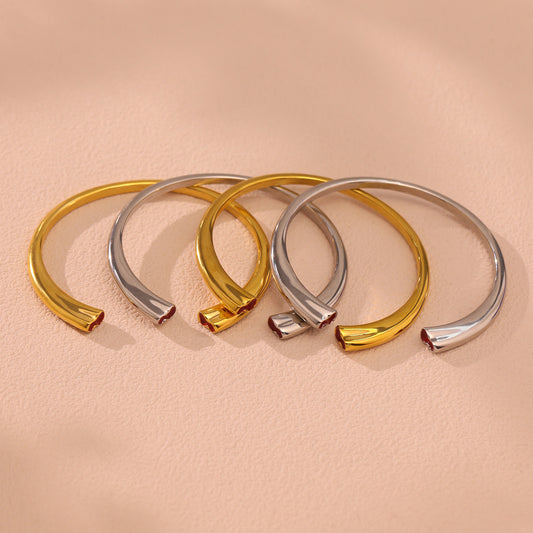 B廠【Z375】INS風歐美熱銷月牙狀C型開口鑄造光面手環鈦鋼鍍18K金簡約手飾品 24.10-2