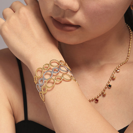 B廠【Z377】螺紋圓環拼接開口手鐲歐美新款不鏽鋼鍍18K金簡約流行手鐲 24.10-4