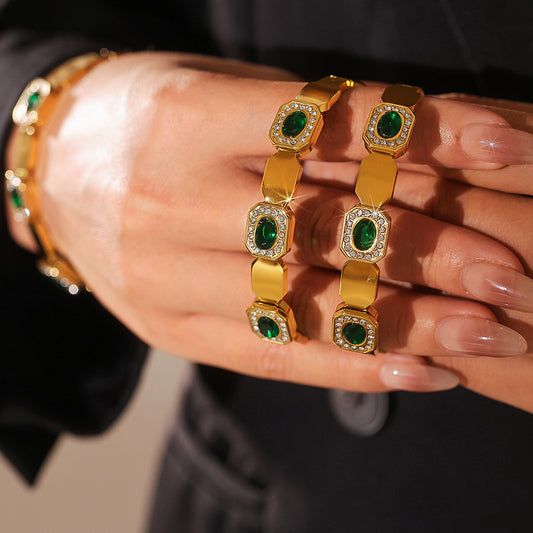 B廠【Z373】歐美方塊綠琉璃鑲鋯石卡扣手環鈦鋼材鍍18k金手環跨境熱銷首飾 24.10-2
