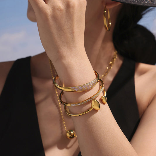 B廠【Z424】ins小眾設計不鏽鋼愛心花朵鑲嵌鋯石開口手鐲鍍18k真金手鐲 25.05-4