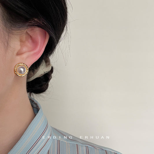 C廠【108】法式復古經典珍珠耳環優雅氣質高級感通勤百搭麻花幾何小巧耳飾品 25.08-1
