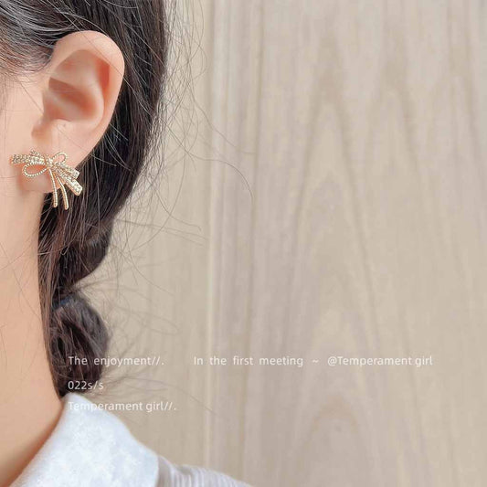 C廠【1260】時尚通勤微鑲鋯石大氣靈動蝴蝶結飄帶耳環法式優雅溫柔繩結耳飾女 24.04-4