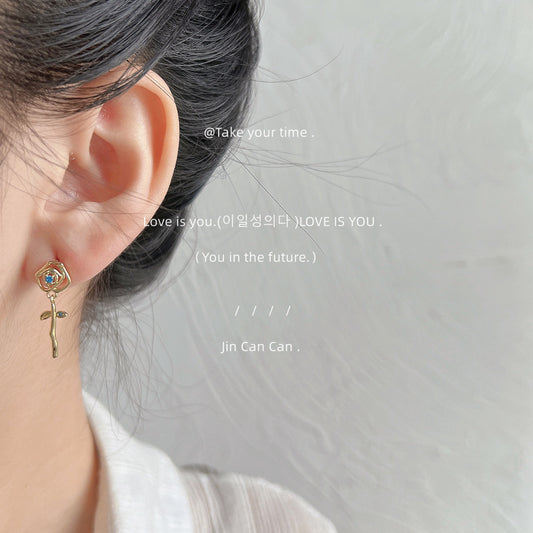 C廠【1297】法式復古微鑲鋯石玫瑰花氣質耳環中古風花朵高級感長款復古耳飾女 24.02-4