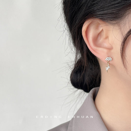 C廠【1061】小眾設計感微鑲鋯石閃電小白雲耳環通勤百搭925銀針鍍14K氣質耳飾 24.04-3