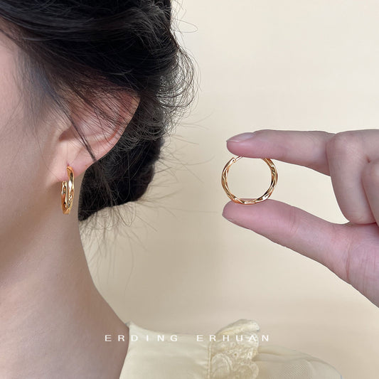 C廠【1147】時尚通勤高級感麻花素圈簡約耳扣極簡金屬感百搭歐美風氣質耳飾女 24.05-4
