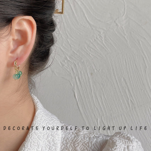 C廠【1120】森系手工設計感~碧玉水草石耳環 氣質簡約創意唯美耳飾小飾品 24.04-2