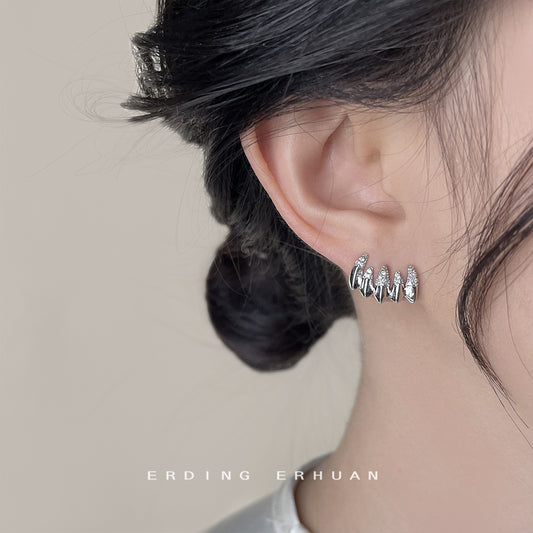 C廠【1069】小眾設計感個性五爪微鑲鋯石耳環925銀針輕奢高級感通勤百搭耳飾 24.05-5