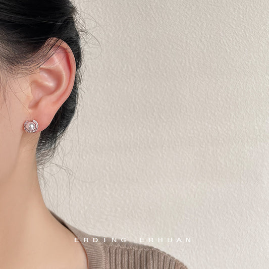 C廠【2958】淡水珍珠扇形耳環微鑲鋯石通勤百搭半圓幾何輕奢高級感氣質耳飾女 25.05-1
